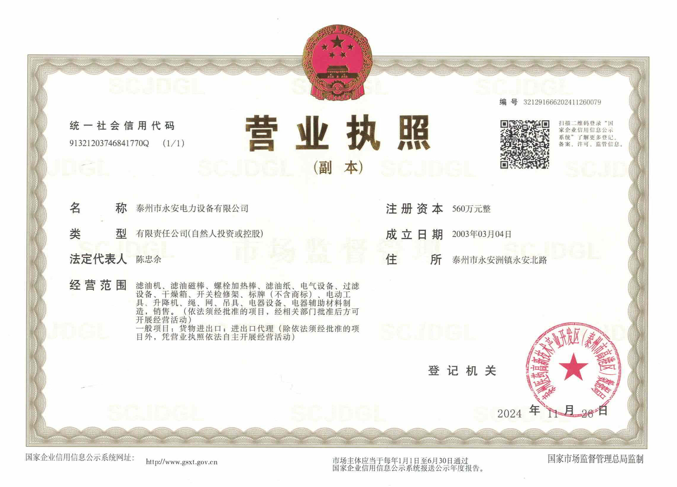 泰州市永安電力設(shè)備有限公司是多年專業(yè)生產(chǎn)各種系列濾油機(jī)、 濾油磁棒、螺栓加熱棒廠家,公司技術(shù)力量雄厚、具有良好的機(jī)械研制能力、產(chǎn)品不斷更新,本公司始終堅(jiān)持“用戶至上”熱誠(chéng)歡迎各界人士光臨指導(dǎo)!前來(lái)洽談業(yè)務(wù)!